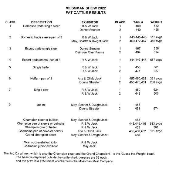 EXHIBITORS RESULTS Posted bymossmanshowJuly 19, 2022July 10, 2023Posted inUncategorized Victor Crees Pavilion as well as Poultry, Equestrian, Fat Cattle and Guinea Pigs… Share this: Click to share on X (Opens in new window) X Click to share on Facebook (Opens in new window) Facebook Like Loading... Related